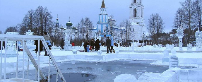 Переливаются на солнце величественные храмы и скульптурные композиции – чудеса, сотворённые руками мастеров! Доводилось ли Вам увидеть Казанский собор изо льда?