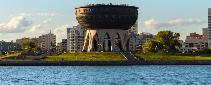 Пройдёте мимо гигантского Центра семьи «Казан» (ЗАГС «Чаша»), который выглядит как огромный казан.