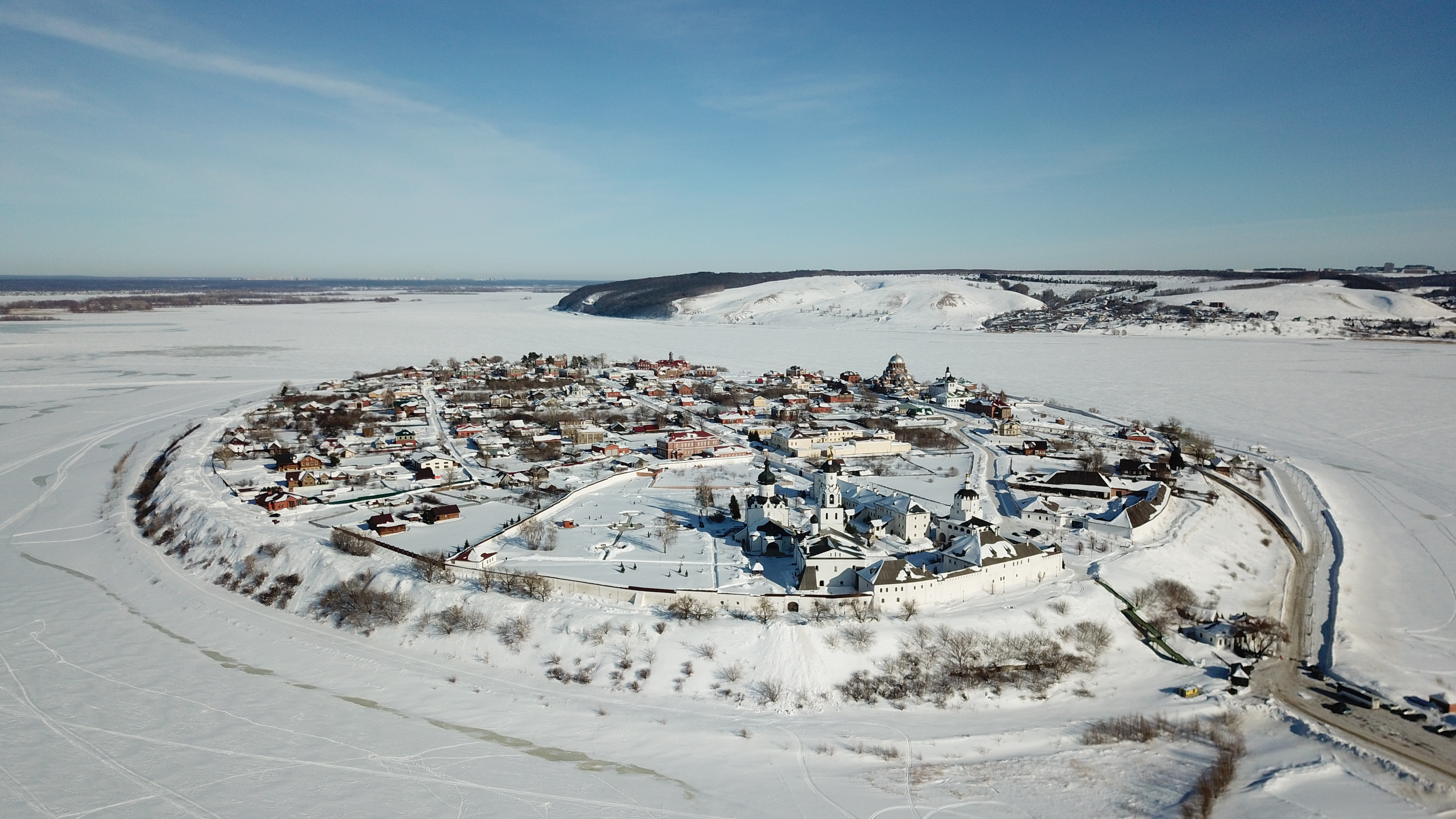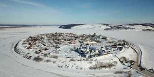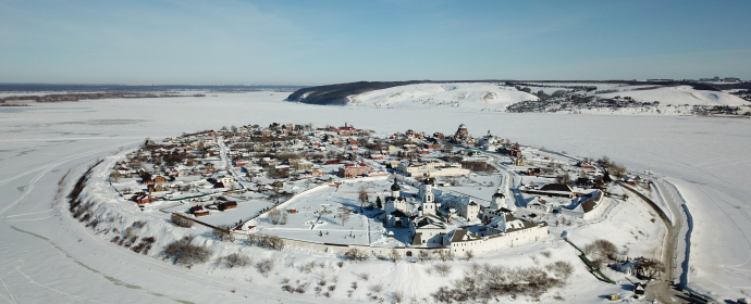 Остров–град Свияжск на «Круглой горе», которую облюбовал Иван Грозный зимой 1550 г. и весной в 1551 г. выстроил здесь город, ставший центром православия Поволжья, сохранил уникальные памятники истории и архитектуры. В окружении природного ландшафта Свияжск являет собой уникальный образец единения природы и общества. Не было в России уголка, где бы на 1 кв. км. приходилось бы столько церквей и монастырей.